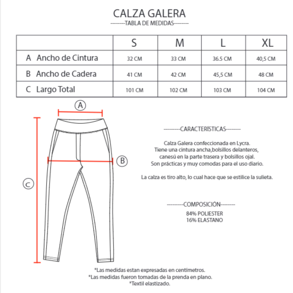 Calzas de lycra clasicas y practicas, un esencial que no puede faltar en el placard. Cuentan con bolsillos en los laterales. Su tiro es alto lo cual estiliza y la hace ideal para cualquier tipo de cuerpo.
